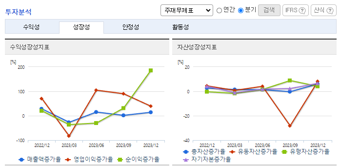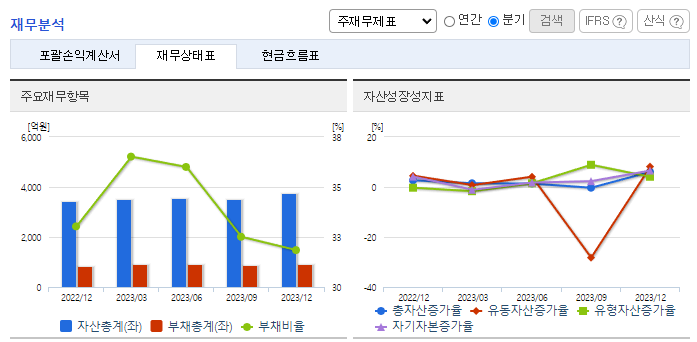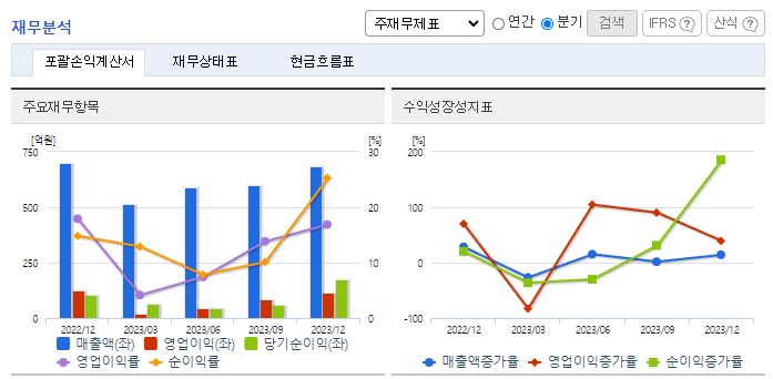 -2023년 9월 전년동기 대비 연결기준 매출액은 8% 증가, 영업이익은 2.8% 증가, 당기순이익은 304.9% 증가. 주력 사업 제품이며 비용 지출이 적은 보안 솔루션 부문에서의 매출 증가에 따라 지난 분기 대비 영업이익이 90% 상승함. 계열회사를 통해 일본, 중국의 보안사업을 시행하고 있으며, 일본의 경우 보안 솔루션, 중국에서는 생산라인 및 네트워크 보안 사업에 주력하고 있음.