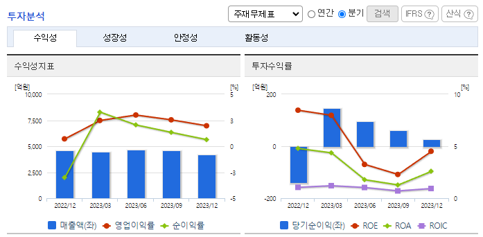 -2023년 9월 전년동기 대비 연결기준 매출액은 20% 감소, 영업이익은 60% 감소, 당기순이익은 58.5% 감소. 석유화학사업을 영위하는 동사 특성상 경기의 영향을 받기 쉬움. 전 세계적으로 경제성장률이 둔화됨에 따라 매출은 감소하는 모습을 보임. ESG 측면에서 연구개발을 통해 환경친화형 유도품 및 고기능성 플라스틱 원료 개발 등의 신규 사업을 발굴하고 지속적으로 진행하고 있음.