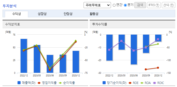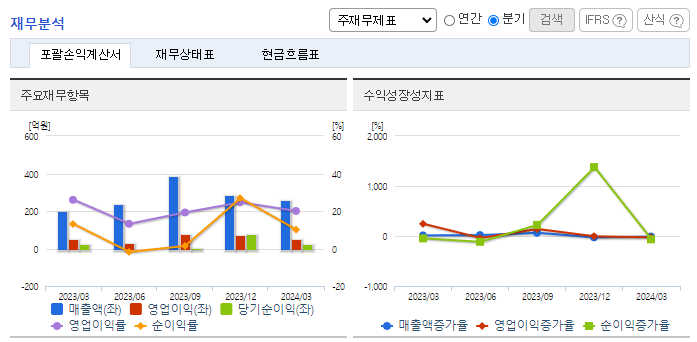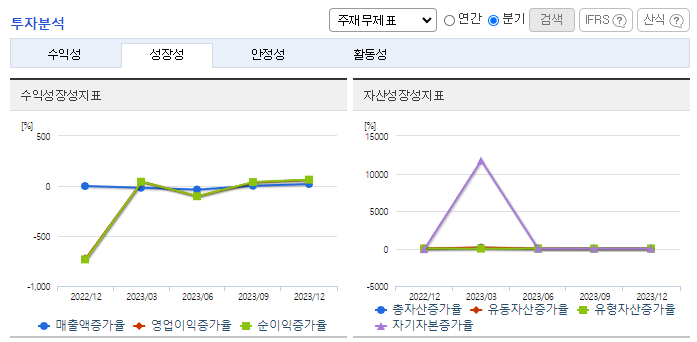 -2023년 12월 전년동기 대비 연결기준 매출액은 92.6% 증가, 영업이익은 130.5% 증가, 당기순이익은 121.6% 증가. 컨텐츠 부분의 매출액 증대는 국내 및 해외 OTT 플랫폼의 유스 애니메이션 수요가 증가한 것과 신규 종속회사 애니맥스브로드캐스팅코리아(유)의 편입이 주요 원인임. 라프텔을 통한 OTT 플랫폼 사업 매출이 2023년에는 297억 원으로 온기 전체가 반영됨에 따라 매출액이 크게 증가하였음.