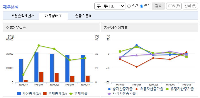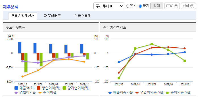 -2023년 9월 전년동기 대비 연결기준 매출액은 81.9% 감소, 영업이익 적자전환, 당기순이익 적자전환. Meridian 인수 후 발생하는 유/무형 감가상각비와 증평 공장 감가상각비가 제조원가에 높은 비중을 차지함. 자가혈당측정 제품 매출 비중은 10.28%로 지난해 말 2.16% 대비 8.12% 포인트 상승 하였으며, 콜레스테롤 측정기기인 스탠더드 리피도케어 등의 제품이 포함된 기타 제품 매출 비중도 증가됨.