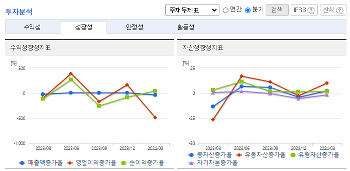 -2024년 3월 전년동기 대비 연결기준 매출액은 31.2% 감소, 영업이익 적자전환, 당기순이익 적자전환. 건설업 부문 이외에도 신사업인 건강기능식품 및 헬스케어, 화장품 사업등 다각화된 사업추진을 통하여 회사의 지속가능성을 확충하고자 노력하고 있음. 美 알람 코리아 ‘반도체 특수가스 생산공장’ 준공하였으며, 이번 성공적인 프로젝트 완성을 계기로 수주 경쟁력이 더욱 강화될 것으로 전망되고 있음.