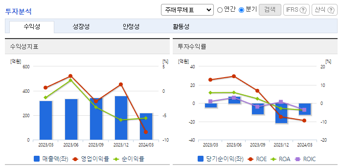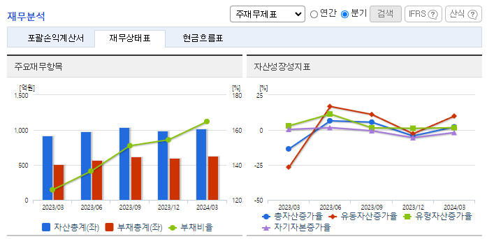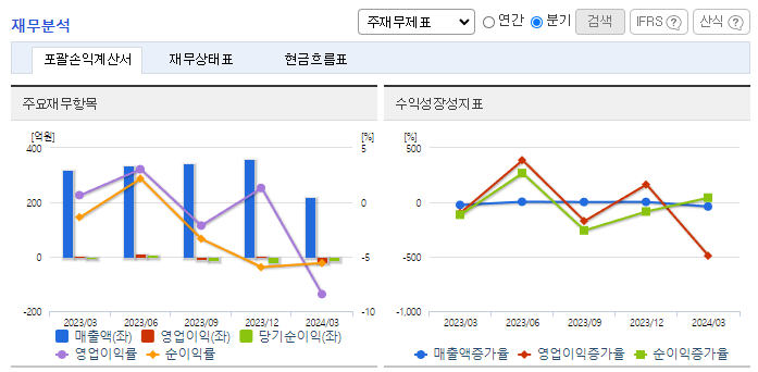 -2024년 3월 전년동기 대비 연결기준 매출액은 31.2% 감소, 영업이익 적자전환, 당기순이익 적자전환. 건설업 부문 이외에도 신사업인 건강기능식품 및 헬스케어, 화장품 사업등 다각화된 사업추진을 통하여 회사의 지속가능성을 확충하고자 노력하고 있음. 美 알람 코리아 ‘반도체 특수가스 생산공장’ 준공하였으며, 이번 성공적인 프로젝트 완성을 계기로 수주 경쟁력이 더욱 강화될 것으로 전망되고 있음.