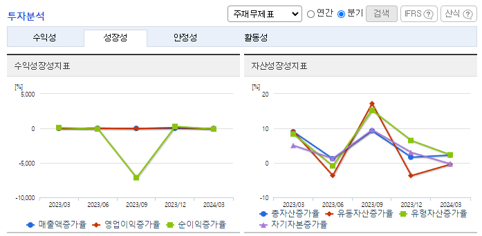 -2024년 3월 전년동기 대비 연결기준 매출액은 12.2% 증가, 영업이익은 25.9% 감소, 당기순이익 적자전환. 자동차산업의 활성화로 고객사 생산량 증대로 이어져 외형은 확대됨. 고정비 동반 성장으로 영업이익은 소폭 감소세를 보임. 올해 E-GMP 전기차용 배터리 모듈 팩 제조 사업 신규 진출로 신설 법인을 통해 향후 자체 설계 및 개발로 사업 영역 확대도 기대됨.