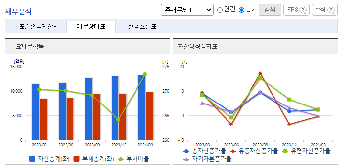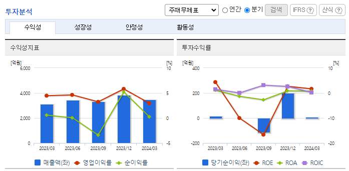 -2024년 3월 전년동기 대비 연결기준 매출액은 12.2% 증가, 영업이익은 25.9% 감소, 당기순이익 적자전환. 자동차산업의 활성화로 고객사 생산량 증대로 이어져 외형은 확대됨. 고정비 동반 성장으로 영업이익은 소폭 감소세를 보임. 올해 E-GMP 전기차용 배터리 모듈 팩 제조 사업 신규 진출로 신설 법인을 통해 향후 자체 설계 및 개발로 사업 영역 확대도 기대됨.
