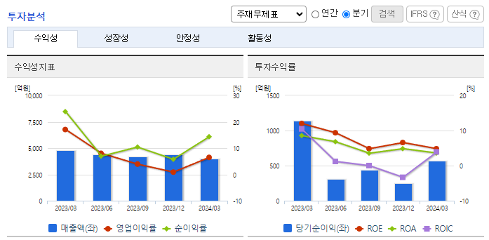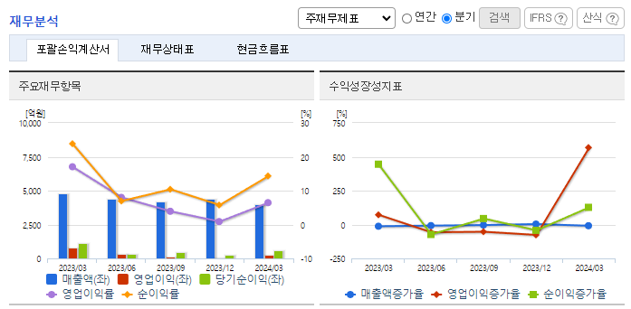 -2024년 3월 전년동기 대비 연결기준 매출액은 16.9% 감소, 영업이익은 68.5% 감소, 당기순이익은 49.7% 감소. 1분기 영업비용이 전분기 대비 14%, 전년동기 대비 6% 감소함. 특히 마케팅비는 효율화 전략을 통해 전분기 대비 83% 감소함. 동사는 경영 효율화 측면으로 연말까지 전체 인력 중 10%를 감축할 계획임. 구조조정을 진행하면서 신작 출시를 통해 매출 확대를 기대하고 있음.