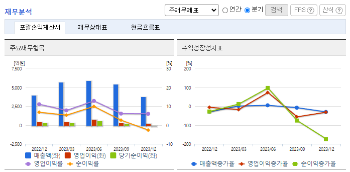 -2023년 12월 전년동기 대비 연결기준 매출액은 12.1% 증가, 영업이익은 25.7% 증가, 당기순이익은 72.3% 감소. 2023년 3분기 기준, 향후 생산할 신차(파생차 포함) 11 차종에 대한 수주는 확정되었고, 향후 새로운 차종에 대한 수주활동을 지속하고 있음. 2020년에는 중국 지역의 전기차 업체에 신규 납품을 시작하였음. 향후 연결법인을 통한 글로벌 전기차량 매출이 크게 성장이 기대됨.