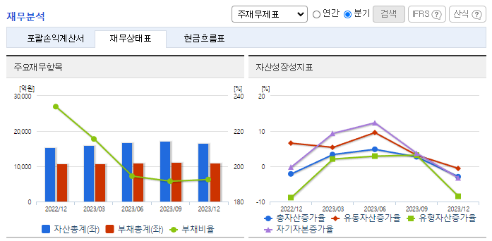 -2023년 12월 전년동기 대비 연결기준 매출액은 12.1% 증가, 영업이익은 25.7% 증가, 당기순이익은 72.3% 감소. 2023년 3분기 기준, 향후 생산할 신차(파생차 포함) 11 차종에 대한 수주는 확정되었고, 향후 새로운 차종에 대한 수주활동을 지속하고 있음. 2020년에는 중국 지역의 전기차 업체에 신규 납품을 시작하였음. 향후 연결법인을 통한 글로벌 전기차량 매출이 크게 성장이 기대됨.