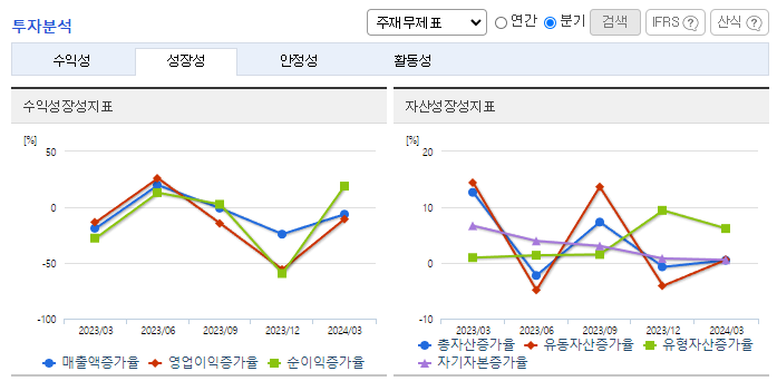 -2024년 3월 전년동기 대비 연결기준 매출액은 15.6% 감소, 영업이익은 57.5% 감소, 당기순이익은 36.8% 감소. 글로벌 경제 불확실성 및 전방산업 수요둔화 등 어려운 경영환경 영향으로 SCOTT 및 OEM 오더가 감소세를 보였음. SCOTT 브래드 자전거 매출 중 약 80%가 유럽지역에서 발생하고 있는 것으로 보아 유럽 프리미엄 자전거 시장에서는 상당한 시장 점유율을 차지하는 것으로 보이기에 긍정적으로 전망됨.