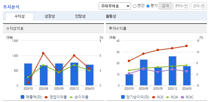 -2024년 3월 전년동기 대비 별도기준 매출액은 4.9% 감소, 영업이익은 524.5% 증가, 당기순이익은 73.3% 증가. 판가 하락으로 인하여 외형 소폭 축소되었으나, 주 원재료인 고철 및 선철 등의 가격 하락으로 수익성은 크게 개선된 모습.. 시장환경은 비교적 우호적이며, 원재료인 고철 및 코크스, 선철의 가격이 하향 안정됨에 따라 추가적인 실적 개선도 가능할 것으로 기대.