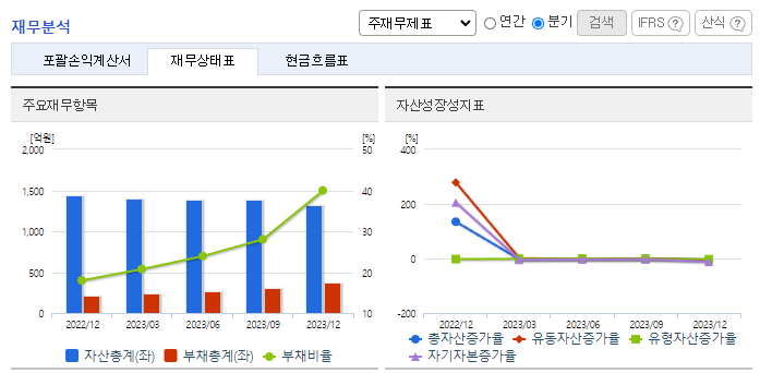 -2023년 9월 전년동기 대비 연결기준 매출액은 25.9% 증가, 영업손실은 1.3% 감소, 당기순손실은 31.3% 감소. 매출은 조금씩 성장하고 있으나 전체적인 볼륨이 부족하여 큰 폭의 적자가 지속 중. 원재료 가격의 상승 및 주력 제품인 골이식재의 생산 가동률이 41.4%에 그침. 치과용 골이식재와 치과용 차폐막 사업의 해외시장 진출을 위해 FDA 승인 준비 중.