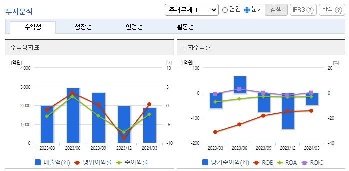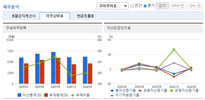 -2024년 3월 전년동기 대비 연결기준 매출액은 5.3% 감소, 영업이익 흑자전환, 당기순손실은 30.9% 감소. 매출액은 감소하였지만 가격경쟁력 확보를 위한 원가절감활동 진행으로 영업이익 흑자전환을 보여주었으며, 주요 국가 거래처들과 해외시장 진출을 위해 MOU를 체결하여 당기순이익 증가함. 전 세계 180여 국의 캐리어 해외 네트워크를 활용해 해외 시장을 공략하고 향후 그룹 매출액 중 해외 비중을 50%까지 끌어올릴 방침임.