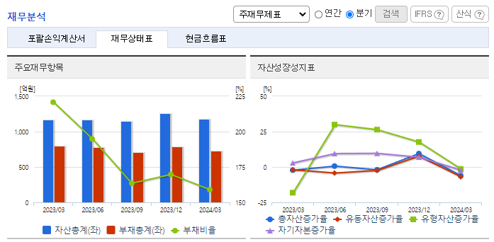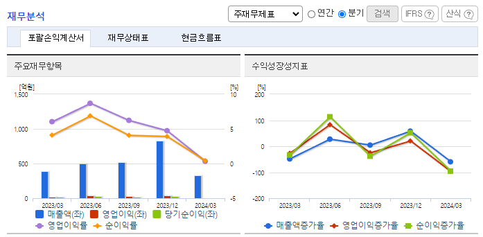 -2024년 3월 전년동기 대비 연결기준 매출액은 16% 감소, 영업이익은 95.5% 감소, 당기순이익은 91.9% 감소. 유지보수 등 사업부문은 21.84% 증가했지만, 네트워크 사업 부문이 71.53%, SW 및 라이선스 사업 부문이 61.27% 감소하면서 외형 성장에 악영향을 줌. 네트워크 분야의 우수한 엔지니어 인재 영입, 공채 활용을 통한 신규 채용을 확대하여 경쟁우위를 높여갈 예정임.