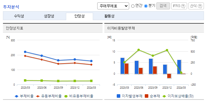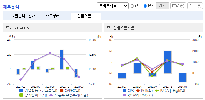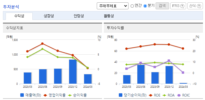 -2024년 3월 전년동기 대비 연결기준 매출액은 16% 감소, 영업이익은 95.5% 감소, 당기순이익은 91.9% 감소. 유지보수 등 사업부문은 21.84% 증가했지만, 네트워크 사업 부문이 71.53%, SW 및 라이선스 사업 부문이 61.27% 감소하면서 외형 성장에 악영향을 줌. 네트워크 분야의 우수한 엔지니어 인재 영입, 공채 활용을 통한 신규 채용을 확대하여 경쟁우위를 높여갈 예정임.