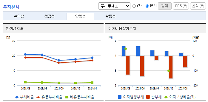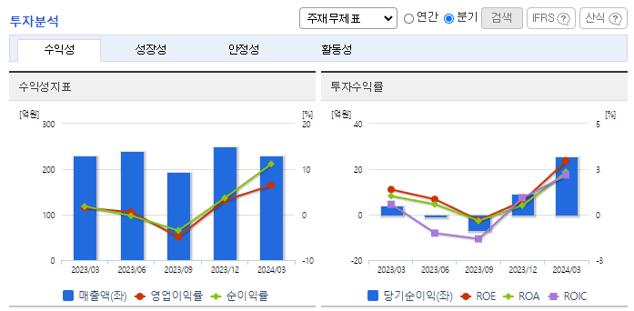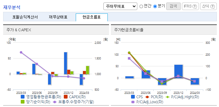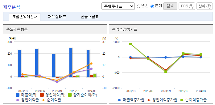 -2024년 3월 전년동기 대비 연결기준 매출액은 0% 증가, 영업이익은 332.9% 증가, 당기순이익은 509% 증가. 전년대비 매출의 상승은 거의 없었으나, 최상위 매출 사업부인 MMV의 매출 비중이 줄어들고 원가 비중이 낮은 카드 부문이 성장하여 수익성 측면에서 개선되었음. T-Money, 스마트카드 등의 수요 증가에 따라 카드 사업부의 매출 증가세가 유지될 것으로 전망.