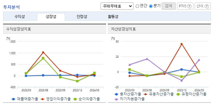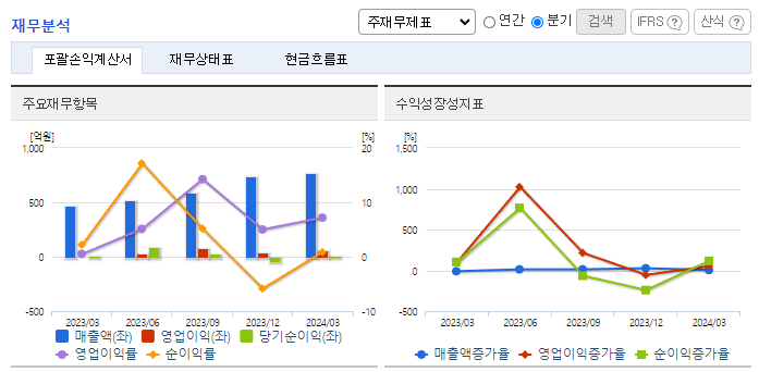 -2024년 3월 전년동기 대비 연결기준 매출액 63.2% 증가, 영업이익 2,210.5% 증가, 당기순이익 28.8% 감소. 광학렌즈 사업은 전기차 및 자율주행차량의 급속한 증가로 고해상도 카메라렌즈의 매출확대가 예상되며, 보안용 CCTV의 매출도 증가함. 최근 주요 스마트폰에는 3D 기술 구현을 위한 모듈이 채용. ToF 모듈이 요구하는 신규 필터(밴드패스필터)는 기존 카메라의 광학필터 대비 ASP(가격)가 2배 이상 높음.