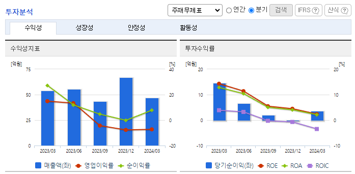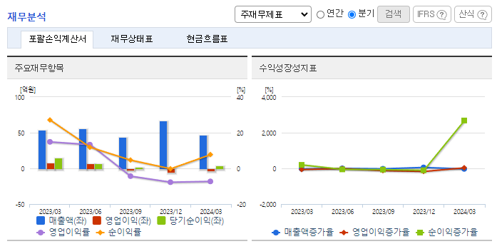 -2024년 3월 전년동기 대비 별도기준 매출액은 12.8% 감소, 영업이익 적자전환, 당기순이익은 75% 감소. 매출 비중이 가장 높은 영상신호용 광링크 실적 부진으로 외형이 축소되었고, 원가율 상승, 판관비 증가 등으로 영업손익이 적자전환함. 지속적인 기술 및 영업 지원을 통한 고객 만족, 고유 생산 설비를 통한 원가 경쟁력 확보, 다양한 디지털 미디어 기기와의 호환성 확보 등의 경쟁 우위를 보유함.