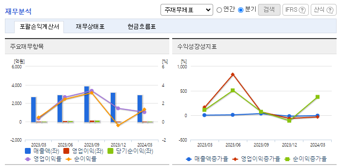 -2023년 12월 전년동기 대비 연결기준 매출액은 6.7% 감소, 영업이익은 24.4% 감소, 당기순이익은 28.6% 감소. 전년동기 대비 중국 LED업체들의 발주량이 30% 이하로 급감하였으며 중국 정부의 지원 축소로 인한 해외 수출부문에서의 매출액 감소. LG 디스플레이 및 LG 전자에 대한 영업확대 및 점유율 향상을 목표로 하고 있으며, 중국 및 일본 등 매출처 다변화를 목표로 영업 활동을 진행 중.