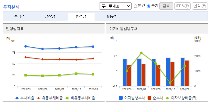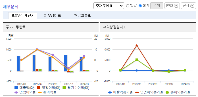 -2024년 3월 전년동기 대비 연결기준 매출액은 5.2% 감소, 영업이익은 3633.3% 증가, 당기순이익 흑자전환. 우수한 품질의 원종돈을 보유하여 MSY 23.0두의 높은 생산성과 1등급 비율 75.8%의 고품질 양돈을 생산하고 있지만 양돈출하 투수 9.0% 감소하여, 양돈매출 17.0%로 감소하였음. 생돈판매방식을 통하여 판매단가는 비교적 낮으나 대량공급을 통하여 공장가동률에 기여할 수 있는 전략도 구사하고 있음.
