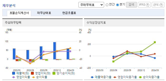 -2023년 12월 연결기준 매출액은 276억 원, 영업손실, 당기순손실. 전년 대비 매출 감소와 함께 IT산업 종사자의 인건비 상승에 따른 인건비 및 외주용역비 증가와 원자재빌 상승의 영향으로 영업손실 지속함. 23년 9월에 금융결제원의 데이터 분석 소프트웨어 사업을 신규 수주했고 10월에 한국로봇융합연구원의 '머신러닝 AI 모델 개발 교육 플랫폼 구축 사업'에 착수할 예정으로 꾸준한 수주 체결이 기대됨.