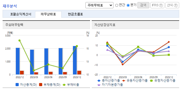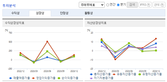 -2023년 12월 전년동기 대비 연결기준 매출액은 5.4% 증가, 영업이익은 5.1% 증가, 당기순이익은 9.5% 증가. 항목별 매출은 솔루션(제품) 1.8% 감소, 서비스 1.8% 증가, 상품 66.5% 증가, 기타 35.7% 증가함. 영업이익은 100G IPS판매와 서비스 매출 증가에 힘입어 매출원가와 판관비 등 고정비가 약 43억 원 증가했음에도 영업이익은 전년 대비 5.1% 증가함.