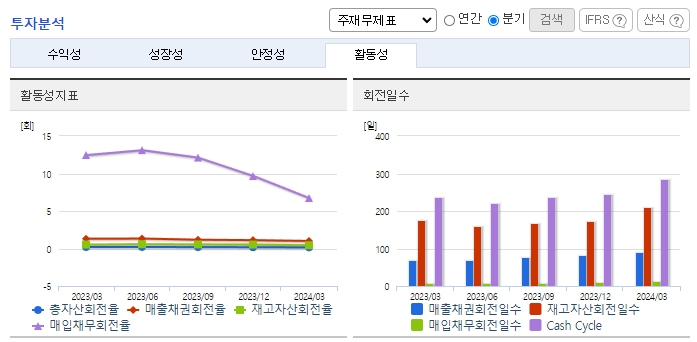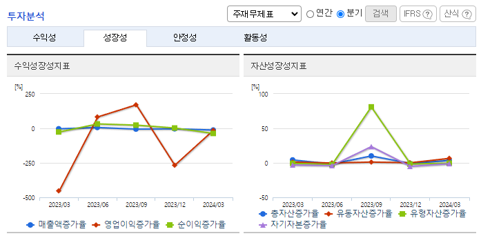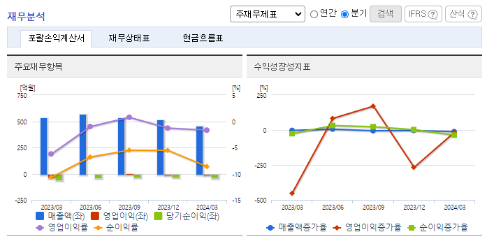 -2024년 3월 전년동기 대비 연결기준 매출액은 14.5% 감소, 영업손실은 76.8% 감소, 당기순손실은 30.6% 감소. 매출액이 지속적으로 감소하는 상황에서 동사는 원단과 같은 원재료비 절감 및 판관비, 인건비 또한 감소에 노력하여 영업손실폭 감소. 다양한 국가에 해외법인(생산기지)이 위치하고 각 해외법인에 전문적인 인재를 배치함으로써 높은 품질과 기술, 탄력적인 제품 생산으로 안정적인 매출을 위해 노력하고 있음.