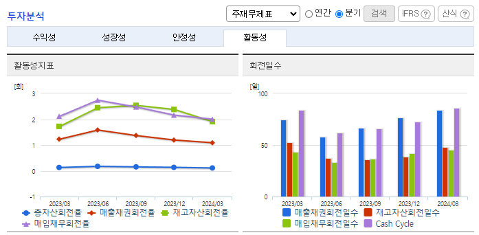 -2024년 3월 전년동기 대비 연결기준 매출액은 13% 증가, 영업이익은 55% 감소, 당기순이익은 42% 감소. 매출원가와 판관비가 20.6%, 18.1% 증가하면서 영업이익에 부정적인 영향을 줌. 특히 인건비 및 복리후생비가 15.9% 상승하면서 부담을 가중시킴. 동사는 R&D 강화, 국내외 시장 확대를 위한 현지 개발영업 역량 확보, 제조경쟁력 강화를 위한 자동화 및 생산혁신 활동에 집중하는 전략을 추진 중임.