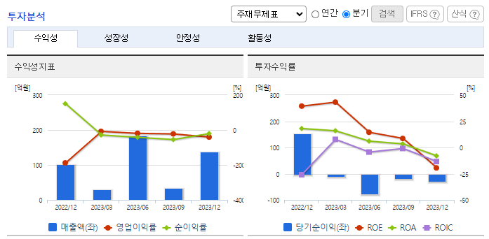-2023년 12월 전년동기 대비 연결기준 매출액은 18.9% 감소, 영업손실은 47.6% 감소, 당기순이익 적자전환. 매출원가는 전년 대비 39.3% 감소하였지만, 해외 물가 상승으로 인한 체류비 증가로, 원가율이 상승하였음. 동사는 2021년~2022년 수주분의 매출인식 지연으로 매출액이 감소하였으며, 사업보고서 제출일 기준 수주잔고는 약 1,310억 원 임.
