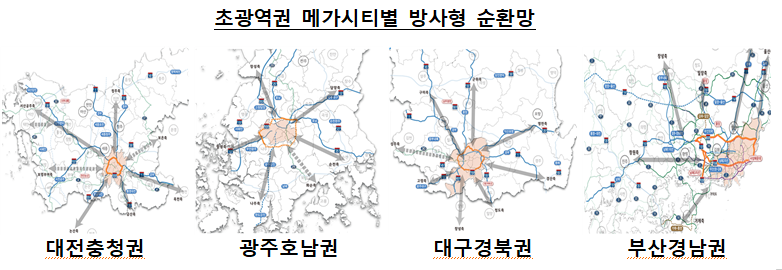 초광역권 메가시티별 방사형 순환망