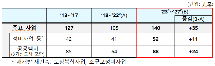 - '23~27년(5년간) 270만호 내외 공급 계획.