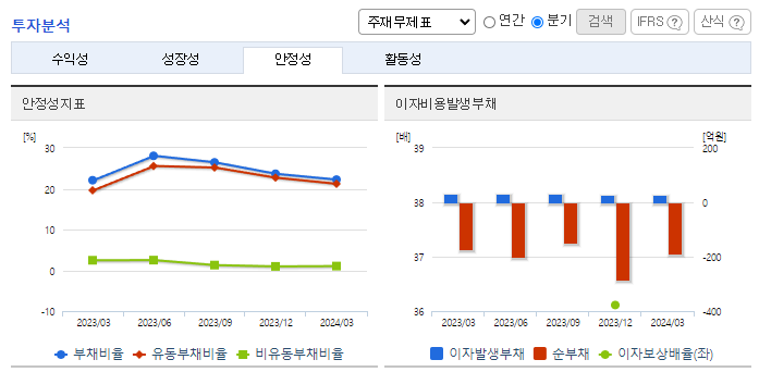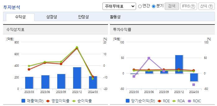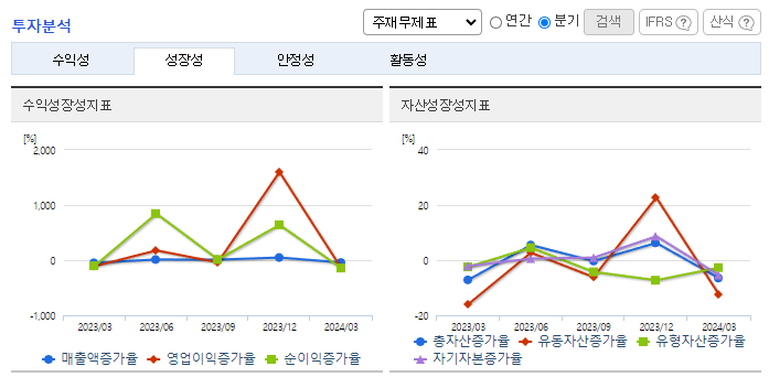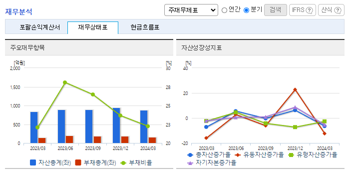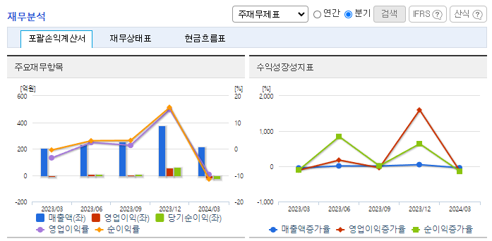 -2024년 3월 전년동기 대비 연결기준 매출액은 4.8% 증가, 영업손실은 197.2% 증가, 당기순이익 적자전환. 네트워크보안, 비대면 출입통제 등 보안제품의 수요가 증가하면서 최근 3년간 연평균 19.7% 성장하며 수출액은 연평균 3.3% 성장함. 정부가 발표한 「정보보호산업의 글로벌 경쟁력 확보 전략」에 따라 보안 패러다임 전환을 성장의 기회로 삼고 정보보호 클러스터 조성 등 경쟁력 있는 산업 환경을 조성하고자 함.