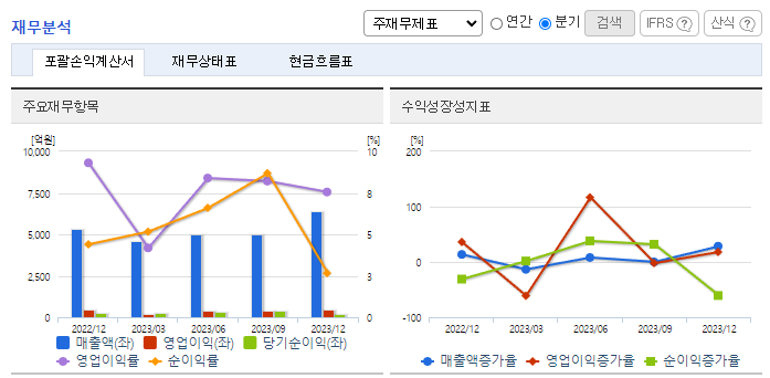 -2023년 9월 전년동기 대비 연결기준 매출액은 19.2% 증가, 영업이익은 16.4% 증가, 당기순이익은 71.5% 증가. VFX 전문업체인 스튜디오레논의 지분인수로 디지털 크리에이티브 회사로서의 위상 강화와 비계열 광고주 포트폴리오 강화가 기대됨. 2023년 3분기 싼타페 FMC, 쏘렌토, 캐스퍼 등 안정적인 계열사 물량과 SK하이닉스, 하이트진로, 한화, 보건복지부 등 캠페인이 회복한 영향으로 개선된 실적을 거두었음.
