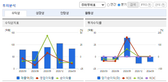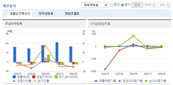 -2024년 3월 전년동기 대비 연결기준 매출액은 3.8% 증가, 영업손실은 290.1% 증가, 당기순손실은 33% 증가. 자회사인 디엠파워는 신사업 가치사슬 확장의 하나로 이차전지 검사장비 및 전기차 충전기 개발 벤처 기업인 인피니티벤처스의 지분을 취득한 상태임. 지속적인 투자와 마케팅을 통해 발매한 스텐트 사업 역시 서울대, 연세 세브란스 등 국내 대형 병원에 등록이 완료됨은 물론 추가적인 유통망 확대가 지속되고 있음.