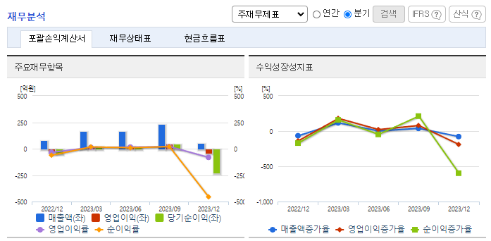 -2023년 9월 전년동기 대비 연결기준 매출액은 22.1% 감소, 영업이익은 61.9% 감소, 당기순이익은 59.4% 감소. 지주, 레저, 소재 사업부에서 모두 전분기 대비 매출이 감소하였음. 특히 2차 전지 소재 부문의 매출이 50% 이상 감소함. 동사 주요 목표시장은 전기자전거를 중심으로 한 스마트모빌리티 시장이며, 이를 중심으로 공공자전거 시장에서 점유율을 확대하는 것을 목표로 하고 있음.