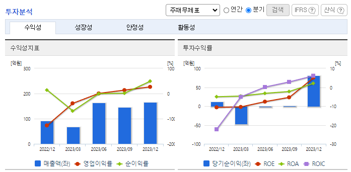 -2023년 12월 전년동기 대비 별도기준 매출액은 31.9% 증가, 영업이익 흑자전환, 당기순이익 흑자전환. 주요 제품인 애브서틴, 파바갈, 클로티냅 등의 국내외 수요가 안정적으로 증가함에 따라 매출이 크게 성장하고 있음. 단백질 재조합 부문의 공정개발 노하우와 제품 출시 경험을 바탕으로 항암제, 희귀 난치성 분야의 First in class 바이오신약 개발을 목표로 하고 있음.