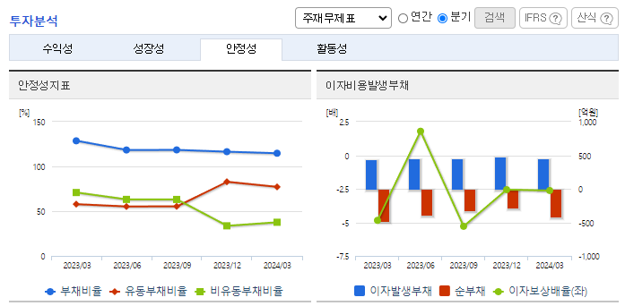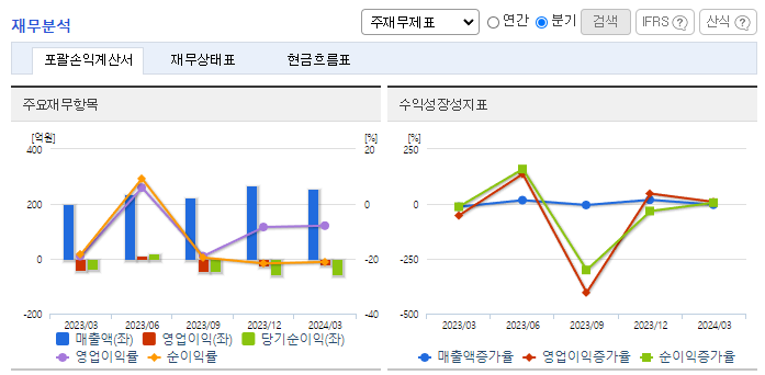 -2023년 12월 전년동기 대비 연결기준 매출액은 4.2% 증가, 영업손실은 57.1% 증가, 당기순손실은 1.2% 증가. 영업손실 확대 주요 원인으로 포털사업의 외부 환경 변화에 따른 PC 트래픽 하락에 따른 매출 감소등이 영향을 미쳤음. 또한, 추진 중인 AI 사업영역 확대 및 투자 목적으로 추가 채용 등 인건비성 비용증가, 사업부문별 마케팅 비용 등 판관비 증가 등이 수익성 감소에 주요한 영향을 미쳤음.
