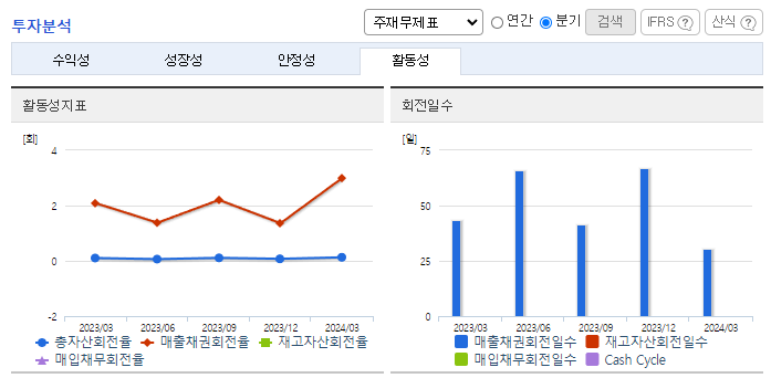 -2024년 3월 전년동기 대비 연결기준 매출액은 2.3% 감소, 영업이익 흑자전환, 당기순이익 흑자전환. 자산운용 사업 부문이 72.61% 증가했지만, 인터넷포털 사업 부문이 45.09% 감소하면서 전체 외형 성장에 악영향을 줌. 영업이익을 사업부별로 보면, 자산운용 사업 부문은 전분기와 당분기 모두 흑자이지만 인터넷 포털 사업 부문은 전분기와 당분기 모두 적자를 기록함.