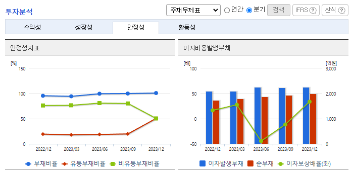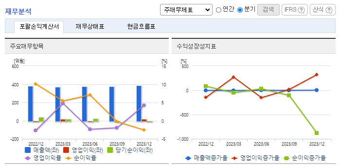 -2023년 12월 전년동기 대비 연결기준 매출액은 1.9% 감소, 영업이익은 60.1% 감소, 당기순이익은 51.8% 감소. 매출은 크게 처방의약품, 오리지널의약품 및 원료의약품에서 안정적으로 확보되고 있음. 그러나 인건비 빛 이자비용 등의 증가로 수익성은 크게 감소하였음. 인구고령화 및 만성질환 증가, 소득 증대와 삶의 질 향상에 대한 욕구 증가로 고령화 타깃 품목 매출이 증가하고 있으며, 향후 지속 성장할 것으로 예상됨.