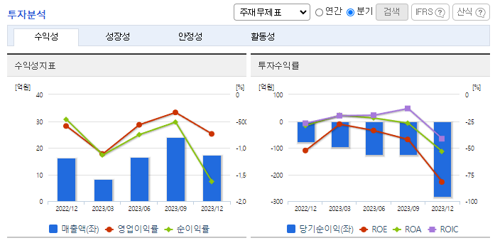 -2023년 9월 전년동기 대비 연결기준 매출액은 4.5% 감소, 영업손실은 7.6% 증가, 당기순손실은 46.4% 증가. 원가가 매출액을 상회하고 있으며 높은 총 급여, R&D 비용으로 손실이 확대됨. 2021년 유럽 CE 인증을 받아 2022년부터 본격적인 유럽 판매를 시작, 2022년 아랍에미리트와 2022년 인도네시아 품목허가를 획득하여 중동 및 동남아시아에 진출함.