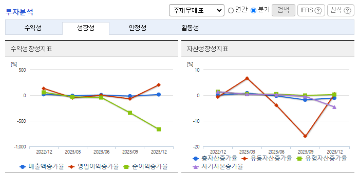 -2023년 12월 전년동기 대비 별도기준 매출액은 8.8% 감소, 영업이익은 45.8% 감소, 당기순이익 적자전환. 코로나19 기간 동안 변화한 시장 상황은 주얼리사업부의 매출액 회복과 손익구조 개선에는 긍정적으로 작용하지 못하고 있음. 2024년에도 우크라이나 전쟁의 지속 및 중동의 불안정성이 계속되고 있어 매출과 영업이익 모두 호전을 장담할 수 없는 상황임.