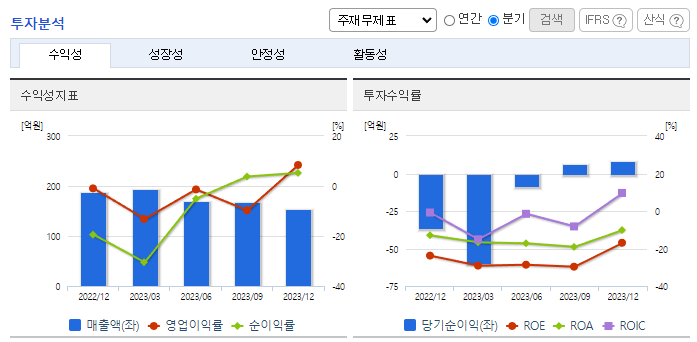 -2023년 12월 전년동기 대비 연결기준 매출액은 8% 감소, 영업손실은 63.3% 감소, 당기순이익 흑자전환. 의료정보시스템 유지보수의 가격은 용역비로 구성되고 있으며 용역비의 변동이 주요 제품의 가격변동에 영향을 미쳐 영업손실을 야기함. 동사는 앞으로 일본, 미국, 중동 시장 등 선진해외시장으로 의료정보시스템과 비대면진료, 클라우드 기반 서비스 등 다양한 의료 IT 서비스들을 지속 납품할 계획임.