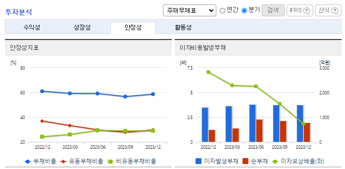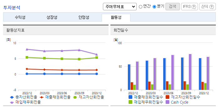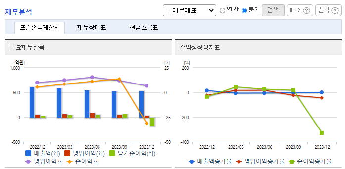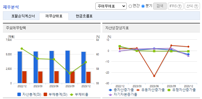 -2023년 9월 전년동기 대비 연결기준 매출액은 4.5% 감소, 영업이익은 17.8% 감소, 당기순이익은 0.1% 감소. 연결 종속회사의 전반적인 매출이 전분기 대비 하락하였음. 그럼에도 불구하고 처리 비용 등 부대비용 가격들이 하락함에 따라 수익성은 강화되었음. 기존 폐기물 처리 분야를 넘어 전기차 폐배터리 등 자동차 재활용 사업 전반에 걸친 영역으로 연구개발 분야를 확대하고 있음.