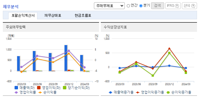 -2024년 3월 전년동기 대비 연결기준 매출액은 6.8% 증가, 영업손실은 12.9% 증가, 당기순손실은 8% 감소. 상용 S/W 및 네트워크 장비, Auto ID 제품 등 상품 판매 호조로 견조한 외형 성장을 보였으나 원가율 개선이 미진하여 손익 개선은 이뤄지지 못함. 동사는 223.2억 원 규모의 주주배정 유상증자를 실행할 계획임, 운영 80.5억 원, 채무상환 82.7억 원, 타 법인증권취득에 60억 원 사용할 계획임.