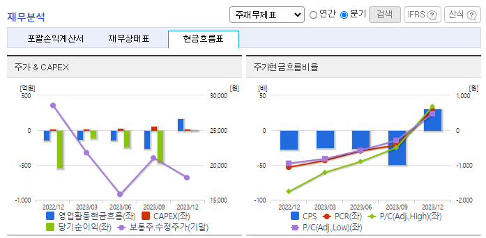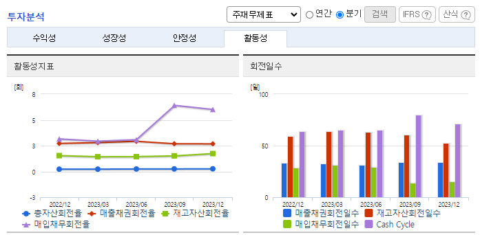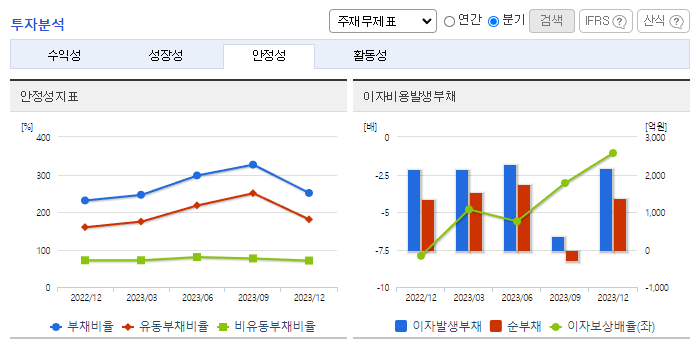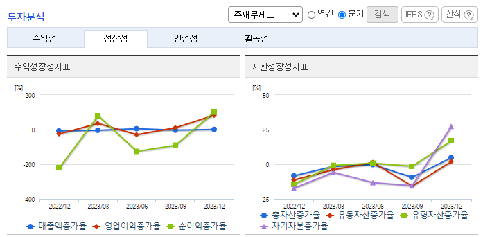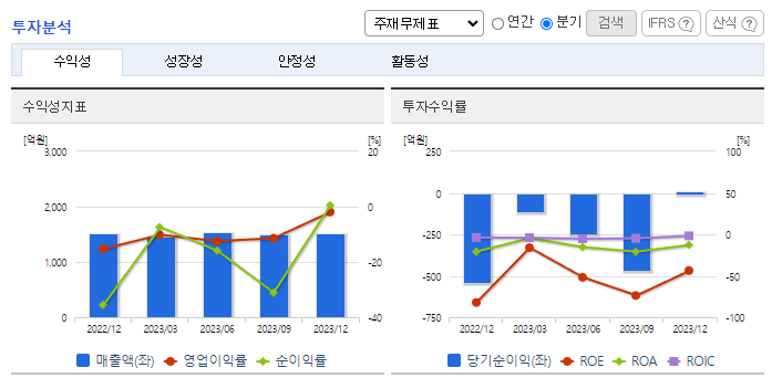 -2023년 9월 전년동기 대비 연결기준 매출액은 7.4% 감소, 영업손실은 1.5% 증가, 당기순손실은 8.3% 감소. 2023년 3분기 기준 매출액의 약 18.9%인 84,144백만원의 연구개발비용을 지출하고 있으며, 안질환 치료제, 당뇨병 치료제 등 신약개발을 위해 노력 중임. 지난해 코로나신속항원검사키트 매출로 인한 기저효과 발생과, 헬스케어 품목 매출감소로 전년동기대비 매출이 줄었으나, 원가 및 비용 절감으로 순손실폭을 축소함.