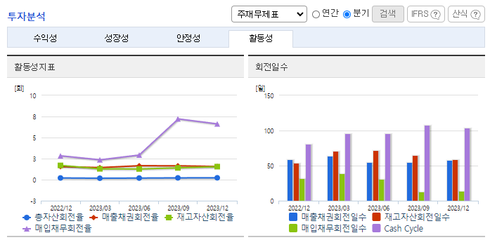 -2023년 12월 전년동기 대비 연결기준 매출액은 3.5% 감소, 영업이익은 38.6% 감소, 당기순이익 적자전환. 통화일양보건품 유한공사의 합자청산으로 종속회사 및 연결재무제표에서 제외된 것이 전기와 대비하여 연결 실적의 주된 감소 원인임. 통화일양보건품유한공사의 연결회사 종속 제외로 인하여 유동부채가 전년 대비 7% 감소했음. 백신공장 완제라인 증축을 위한 설비 투자를 진행으로 차입금 증가.