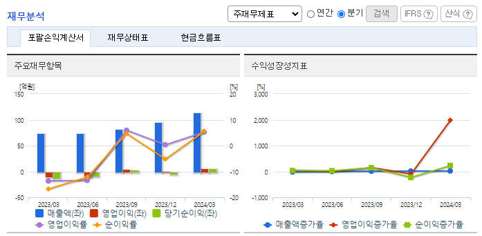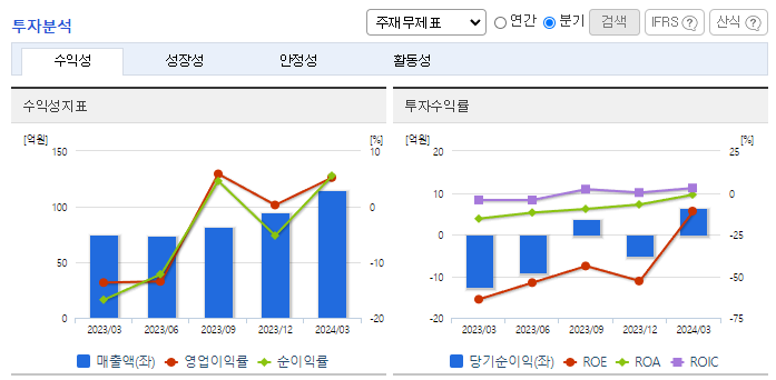 -2024년 3월 전년동기 대비 연결기준 매출액은 53.7% 증가, 영업이익 흑자전환, 당기순이익 흑자전환. 자동차 업계 호조로 동사의 자동차원단 매출이 전년동기 대비 큰 폭으로 상승하였고 가구용원단 및 인조가죽 매출액 또한 상승하며 동사의 실적에 긍정적으로 작용. 신규 프로젝트 수주를 위해 신소재 및 기능성 제품 개발 및 가구용 원단의 시장개척 등 다양한 매출 신장을 위해 노력.