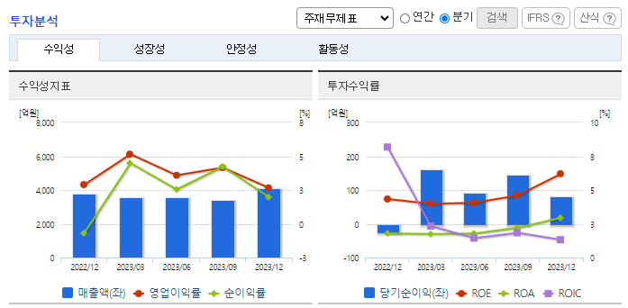-2023년 12월 전년동기 대비 연결기준 매출액은 2.7% 증가, 영업이익은 28% 증가, 당기순이익은 48.9% 증가. 매출은 자회사 일진전기의 판매량 증가 등에 힘입어 전기 대비 3801억 증가한 1조 4719억을 달성했음. 사업부문별로는 초고압 변압기 및 나선 매출이 증가했음. 영업이익 증가 요인은 전력기기 시장 호황에 따른 변압기 매출 증가와 생산성 향상을 통한 원감절감이 배경임.