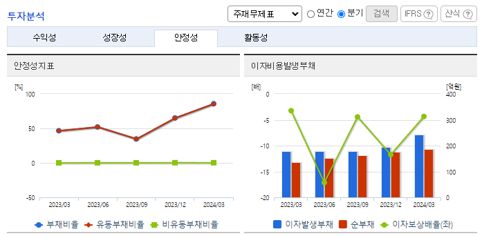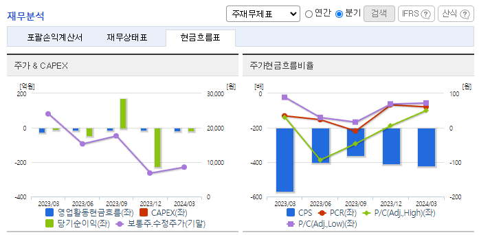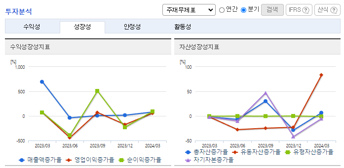 -2024년 3월 전년동기 대비 별도기준 매출액은 41.1% 증가, 영업손실은 94.5% 증가, 당기순손실은 95.2% 증가. 동사는 헬스케어, 미용, 생활용품 등으로 사업을 확장했지만, 이렇다 할 성과를 거두지 못했음. 최근 5년 실적은 2020년을 제외하면 모두 적자를 기록함. 온라인 채널은 종합몰, 오픈마켓, 소셜커머스, V커머스 등 40여 채널 제휴를 통해 향후 온라인 매출 확대의 기반을 마련하여 매출 성장이 기대됨.
