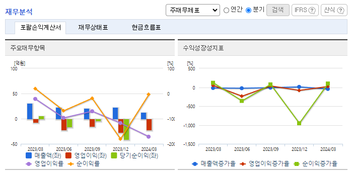 -2024년 3월 전년동기 대비 연결기준 매출액은 59.41% 감소, 영업손실은 226.67% 증가, 당기순이익은 적자 전환했음. 동사 매출 구성 중 핵산추출 시약 사업 부문이 68.26% 감소하면서 전체 외형 성장에 악영향을 줌. 지속적인 연구개발을 통하여 주요 원재료인 마그네틱 비드 관련 특허를 출원하여 원가 절감 노력을 기울이고 있음. 또한 샘플 투입부터 PRC 준비까지 전자동 분자진단 장비를 개발하고 있음.
