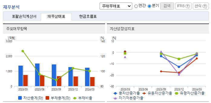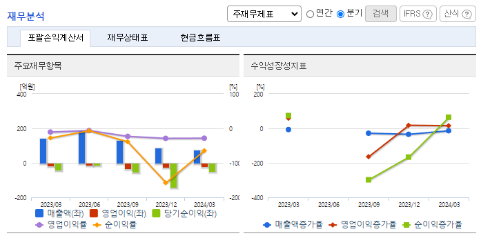 -2024년 3월 전년동기 대비 별도기준 매출액은 47.6% 감소, 영업손실은 39.2% 증가, 당기순손실은 16.7% 증가. 최근 철강 경기의 호황으로 인하여 이형철근의 생산이 예년 대비 상대적으로 증가하였음. 필리핀 디나가트 니켈광산 기반시설 공사가 순조롭게 진행되고 있으며, 5월부터 니켈 원광 채굴이 개시될 수 있도록 현지 파트너사와 긴밀하게 협력하고 있고, 기반시설 공사를 통해 빠른 사업성과를 내고자 노력하고 있음.