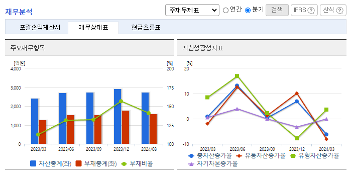 -2024년 3월 전년동기 대비 별도기준 매출액은 47.7% 감소, 영업이익 적자전환, 당기순이익 적자전환. 동사는 '오프사이트'방식 수소 충전소 구축 사업도 병행하고 있으며, 약 30개소 이상의 수소 충전소 구축 완료 및 구축 진행하고 있음. 사업의 다각화를 추진하고자 급변하는 사우디 지역의 프로젝트에 선제적 투자 고려 하여, 2024년 하반기 추진되는 프로젝트들을 목표로 적극적으로 시장에 참여를 계획함.